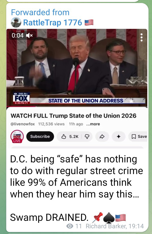 Military Veteran Derek Johnson, whom I’ve featured and cited on several occasions on the military operation aka Devolution, as well as Military Occupation/Government, posts this pertinent insight on last night’s State Of The Union speech by President Trump :