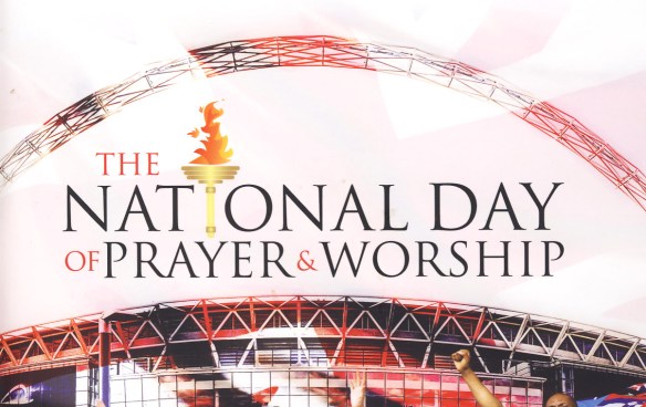 In the midst of a sequential graphical calendar of major football and rugby events on Wembley Stadium website appears this unusual page devoted to the National Day of Prayer and Worship. It describes the amazing beginnings of this event as follows.: