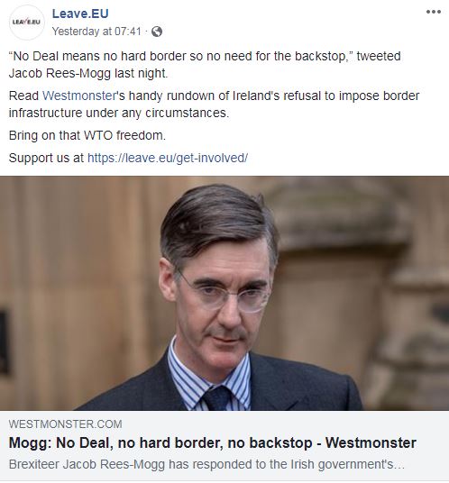At the close of link 4, I noted that Leo Varadkar, prime minister of the Irish republic, has ruled against setting up a hard border and thus no need for any Brexit ‘backstop’ as part of the EU Withdrawal Agreement. This week he confirmed that’s the case and Jacob Rees-Mogg MP picked up on that declaration: