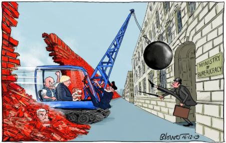 Within days we were to read the the PM proposes to make radical changes within the Civil Service. So once again, a cartoonist reiterates the prophetic picture…