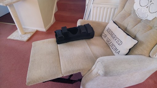 And so much easier to walk, albeit carefully, without being weighed down by brace and needing any support of a wheeled frame or crutches!! Moreover, no need trying to sleep with a straightened leg. Thank the Lord her leg wasn’t in a plaster-cast!
