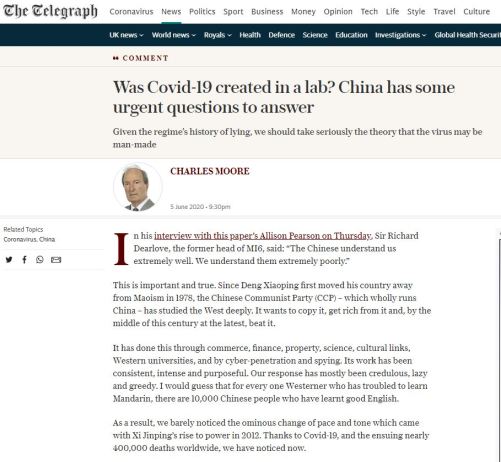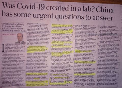 Further validation appears in an article published in last week’s Telegraph: Exclusive: Coronavirus began ‘as an accident’ in Chinese lab, says former MI6 boss and, in view of the depth of discussion it is important to read the full article. Alternatively, read the overview in its former editor Charles Moore’s op-ed Was Covid-19 created in a lab?