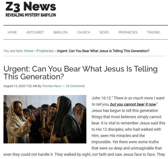 ‘Jesus has begun to tell this generation things that most believers simply cannot bear. It is vital to remember Jesus said this to His 12 disciples, who had walked with Him, seen His miracles and the impossible. Yet there were some truths that were so deep and unimaginable that even they could not handle it. They walked by sight, not faith and saw Jesus face to face. They saw Him walk on water, multiply food, raise the dead and yet there were truths He could not reveal to them as they could not handle it.