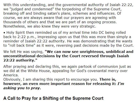 Therefore, I’m pleasantly surprised to be alerted by Elaine Venning to yesterday’s notable intercessory word on The Supreme Court of The United States, by her writing,