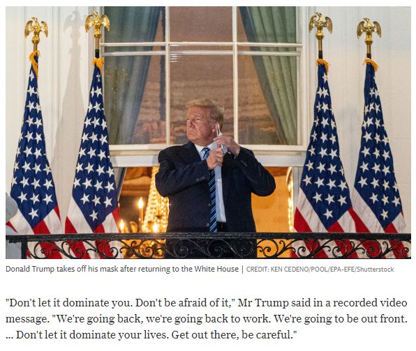 “There were two parts to the dream. The dream I shared part 1 and kept back part 2 . I felt that part 2 was not yet to be released. Amazing however, I woke the morning of Trump’s announcement, which had come late the night before [Thurs 1st Oct], which I had not seen, and felt that part 2 was to be posted. When I read news of his Covid result I was immediately arrested with the timing and indeed the content. God’s timing is amazing. Part 2 I believe was held back for that moment.”
