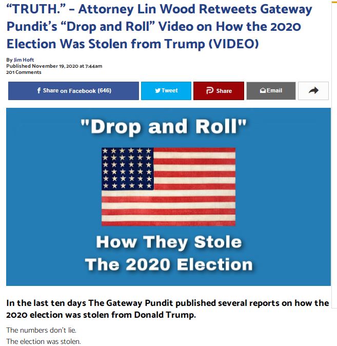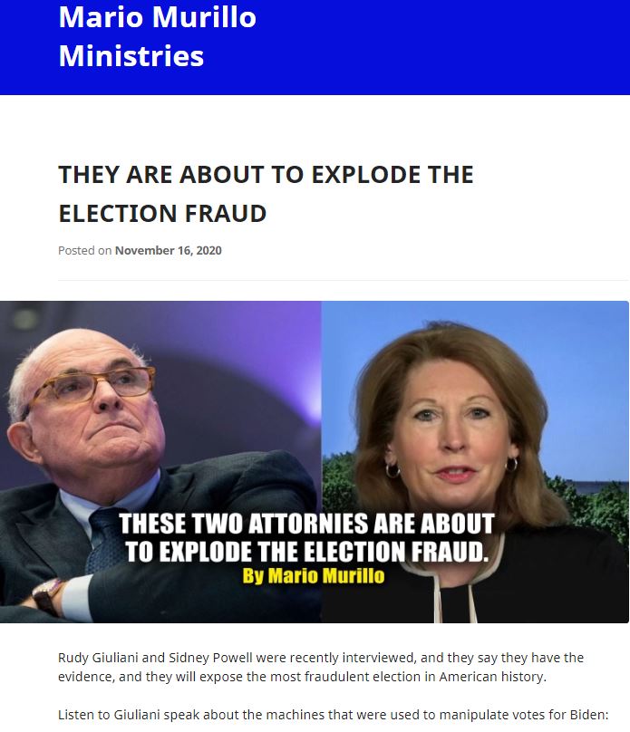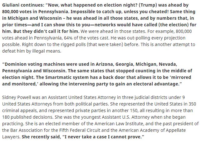 Clarification: Thank you to Chris Moyler for pointing out that attorney Sidney Powell is not part of the official Trump legal team (see link):