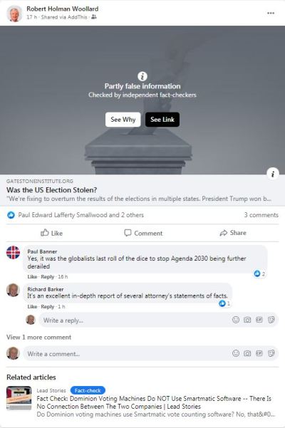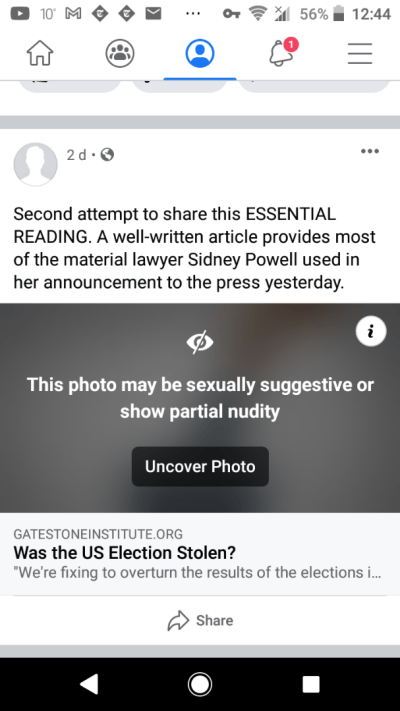 Regular readers are aware of my objections to Facebook’s unwarranted censorship, especially during and after the recent US election and reports of fraudulent voting. Let me show you photo-proof of it moving towards slanderous stupidity. The suppression of free, non-offensive and non-inflammatory factual data and opinion is contrary to the principles of democracy. It is a curse upon society and should be soundly condemned.