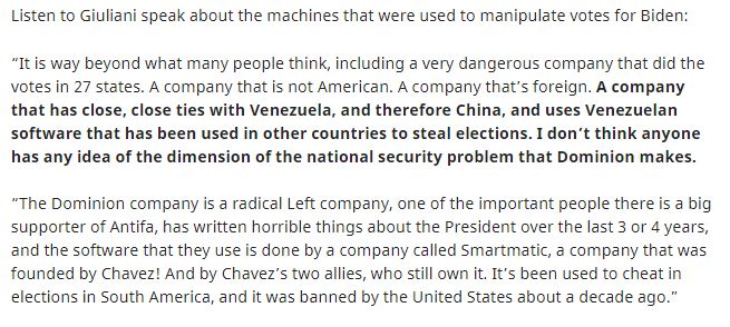 What we are really dealing with here, and we are uncovering more by the day, is the massive influence of Communist money through Venezuela, Cuba, and likely, through China and the interference with our elections here in the United States. The Dominion voting systems and the Systematic technology software, and the software that goes in […]