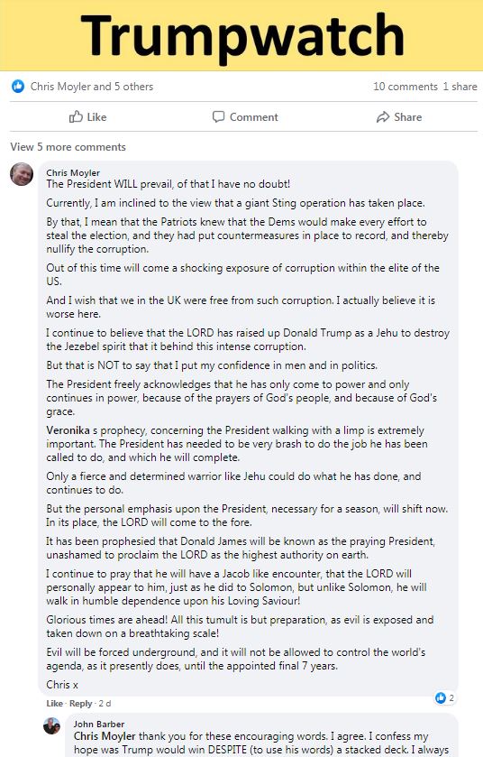 - October 2017, World Tribune published Desperate prayers by Trump’s great aunts in ‘sanctuary’ cottage said to spark Hebrides Revival in Scotland. It closes: ‘Online post in the 2017 National Day of Prayer asked: “Coincidence or Holy Ghost? Not only did the revival reach the sisters’ Island in Scotland but the Hebrides Revival became known around the world. Little did they know that their nephew would one day become the President of the United States of America.”.’