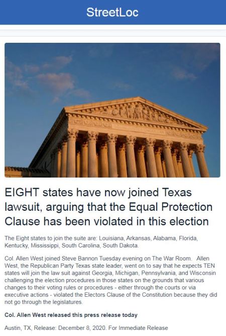 ALSO yesterday on Newsmax TV,Trump’s lawyer Jordan Sekulow is reported as saying that ‘Texas Attorney General Ken Paxton’s lawsuit filed with the US Supreme Court is the “be-all, end-all case” for President Donald Trump’s ongoing and long-running election challenge.