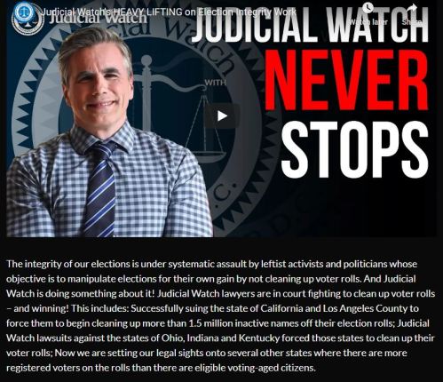 [About] ‘Judicial Watch, Inc.is a conservative, non-partisan educational foundation, which promotes transparency, accountability and integrity in government, politics and the law. Through its educational endeavors, Judicial Watch advocates high standards of ethics and morality in our nation’s public life and seeks to ensure that political and judicial officials do not abuse the powers entrusted to them by the American people. Judicial Watch fulfills its educational mission through litigation, investigations, and public outreach.