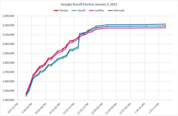 They are fed up after witnessing more suspicious vote dumps in the Georgia run off, as evidenced by the highly suspicious voting graphs, containing dumps of votes similar to those seen last November.