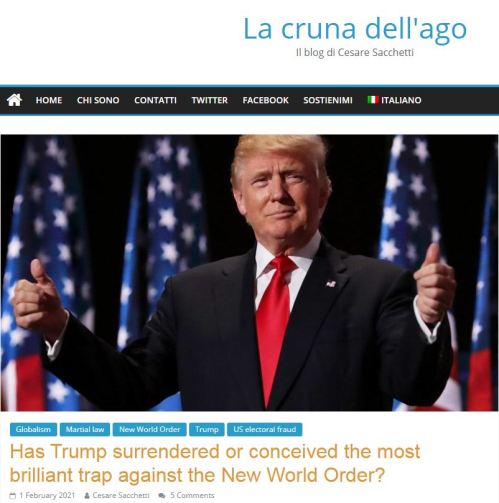 Thank you to ‘High Plains Drifter’ Tim Shey for commenting in yesterday’s post on how Donald Trump is acting as C-i-C by giving a link to journalist Cesare Sachetti’s latest blog. Although published in Italian we’re blessed with an online translation facility.
