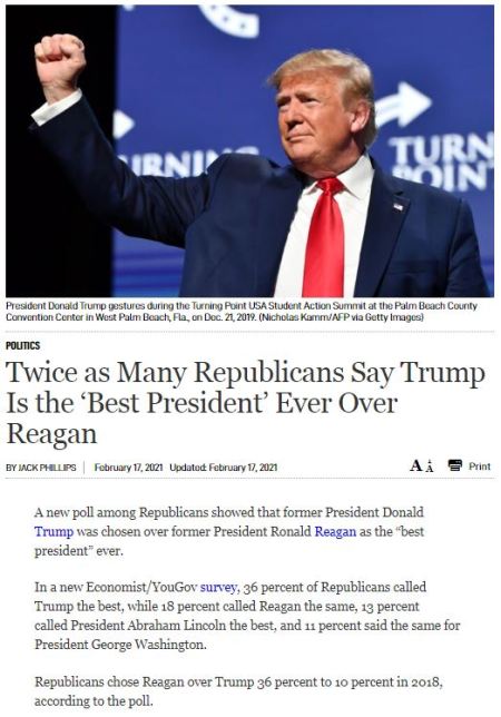 READ IN FULL > https://www.theepochtimes.com/twice-as-many-republicans-say-trump-is-the-best-president-ever-over-reagan_3700400.html