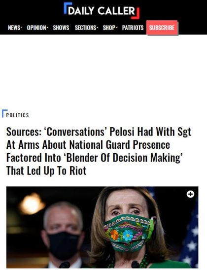 NB: ‘…The three sources who confirmed the discussion to the Daily Caller did so under the condition of anonymity, citing the fear of putting a chill on further witnesses to how the security situation unfolded Jan. 6. The discussion, if accurate, raises questions as to what role Pelosi’s office had in the security failures that resulted in the resignations of both Irving and former Chief of Capitol Police Steven Sund….’