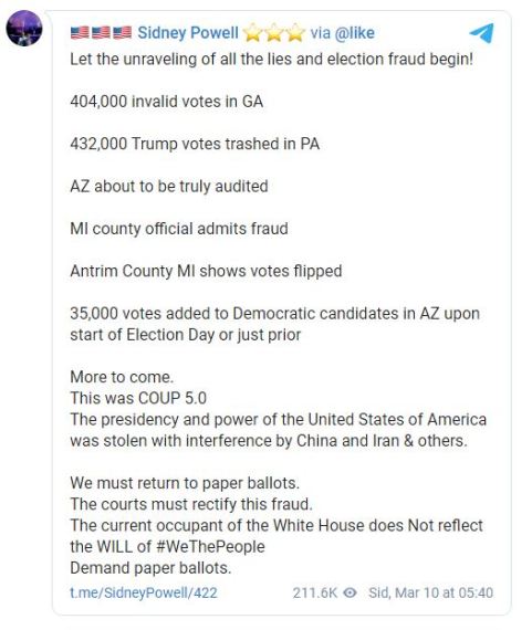 This has just come in from Sidney Powell, one of the key lawyers who is fighting to expose this ‘Elecshun Creme’.