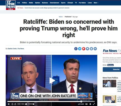 Read in full at https://www.foxnews.com/politics/ratcliffe-biden-so-concerned-with-proving-trump-wrong-hell-prove-him-right