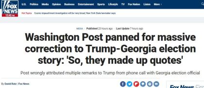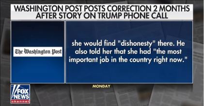 ‘The Washington Post made a massive correction Monday to a January report about a phone call between then-President Donald Trump and a Georgia elections investigator, as the liberal paper admitted multiple quotes attributed to Trump based on an anonymous source were inaccurate.