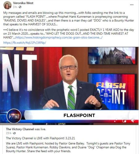 My messages and emails are blowing up this morning,…with folks sending me the link to a program called “FLASH POINT”….where Prophet Hank Kunneman is prophesying concerning “RAVENS, DOVES AND EAGLES”…and then there is a man they call “DOG” who is a Bounty Hunter that speaks to the HARVEST OF SOULS…