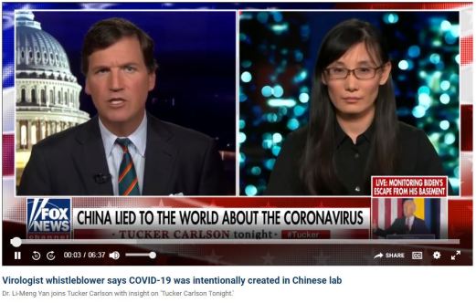 ‘Further to my updates of 6 May, 8 June, 15 July, 19 August and 17 September upon hearing on 24 March the Lord confirm to me that Covid-19 is a “man-made virus”; news of the full report promised in Dr Yan’s censored interview with Tucker Carlson lies buried in the depths of Friday’s Koenig’s Eye View from the White House, which reads…: (Click for original report at Zero Hedge).