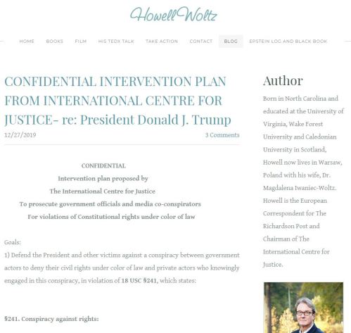 Next, read Howell’s fascinating proposal with its highest-level US victims and allegedly criminally treasonous co-conspirators, as listed in Confidential Intervention Plan from International Centre for Justice re. President Donald J Trump (27 Dec 2019), copy pages of which are below: