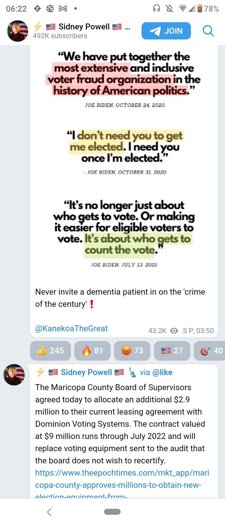 Other headlines at TET and Sidney Powell’s amusement upon Biden telling the truth – “Never invite a dementia patient in on the crime of the century!”: