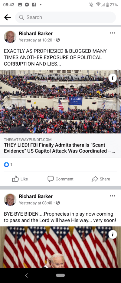 To continue scrolling down my Facebook, but now from the top item of yesterday – and note this confirmation: