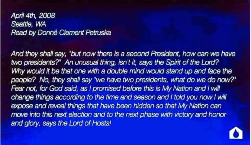 “And they shall say “But now there is a second President – how can we have two presidents?” An unusual things is’t it? says the Spirit of the Lord. Why would it be that one with a double mind would stand up and face the people?….”