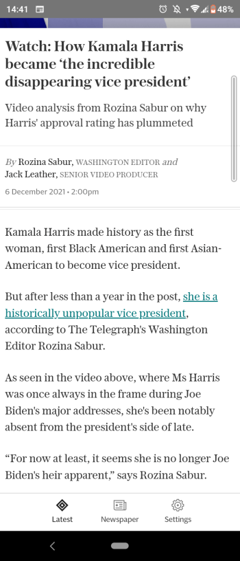And on the ‘disappearing Queen Veep’ in yesterday’s online Daily Telegraph: