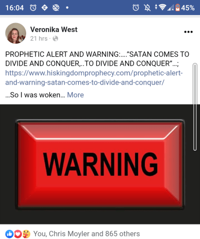 So about 6:45pm I noted Veronika had posted ‘Just now’ her own ‘Warning’…!!!(today’s screenshot) – AND she brings a second specific confirmation within the text:
