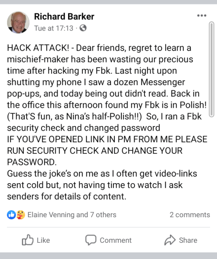 To continue with my planned posts I need to find a comment within my Farcebuk, which meant opening up my account settings via phone – then I saw the ‘badge of honour’: