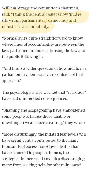 ‘A group of psychologists have written to Parliament’s Public Administration and Constitutional Affairs Committee, warning that civil servants and Government scientists used frightening imagery to change public behaviour during the pandemic, in a way they say was unaccountable and unethical.