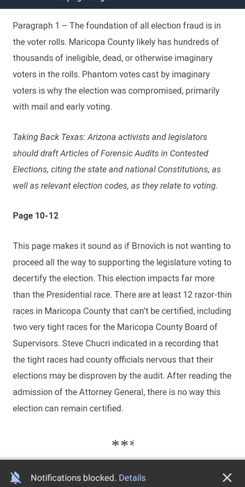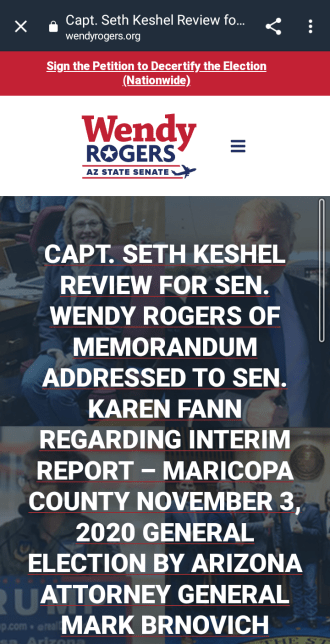 PS. Jack Dennis’ article re-blogged this morning gives media screenshots rather than text, but the following shots are from the beginning and close of Arizona Senator Wendy Rogers’ Telegram on Seth Keshel’s review of the state’s Attorney General’s actions.
