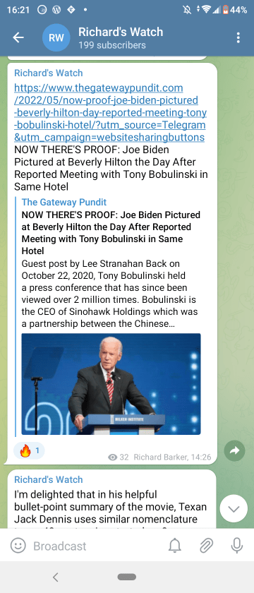 Exposure of US political corruption keeps spewing forth, thereby fulfilling prophecy Posted on Monday, 9 May, 2022 by Richard Barker Is the Lord exposing rotten politics? UK, USA – next EU?? A couple of news items form The Gateway Pundit, as shown on my Telegram channel: PS @ 16:52 Share this: Click to share on Facebook (Opens in new window) Facebook Click to share on WhatsApp (Opens in new window) WhatsApp Click to share on LinkedIn (Opens in new window) LinkedIn Click to share on X (Opens in new window) X More Click to print (Opens in new window) Print Click to share on Pinterest (Opens in new window) Pinterest Click to email a link to a friend (Opens in new window) Email Click to share on Tumblr (Opens in new window) Tumblr Click to share on Telegram (Opens in new window) Telegram Click to share on Pocket (Opens in new window) Pocket Click to share on Reddit (Opens in new window) Reddit Like Loading...