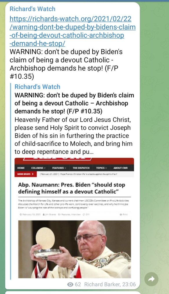 Resident Biden claims to be a Catholic, but this stricture applies to him too, as blogged previously and linked along other posts on my Telegram at