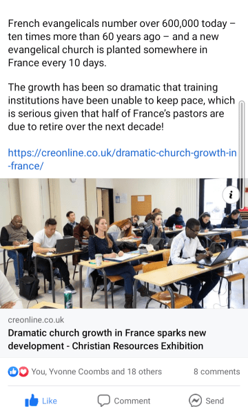 1. This is interesting! I recognise that you can’t cover the whole world but personally I am very interested in goings-on in France. When I spent a year there for my degree about 20 years ago I joined an evangelical free church – but it was well-known that the département I was living in (Moselle) was a hotspot for Protestant churches, as it’s part of that area which was historically seen as more German than French. Elsewhere in the country, especially in the south-west, it was reputedly (and by a friend’s experience) very hard to find a ‘real’ church.