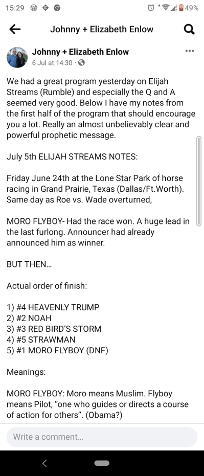 Heavenly Trump winning that horse race is so incredibly prophetic even a blind atheist could see it. The Lord has a real sense of humor.