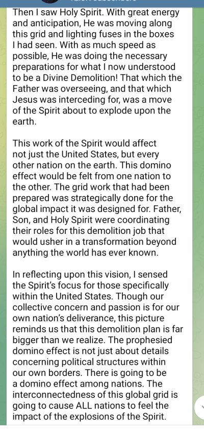 Further to December 2020 Open Vision of the Trumps Confirmed by Wanda Alger’s 2015 Dream…and as someone who doesn’t get time for videos, unless run at speed, I strongly recommend taking time to read and listen to Wanda speaking about this – and as you’d expect, I love the references to ‘timing’. Also, in view of strong differences of opinion about prophecies concerning 2020 election I add a footnote from the transcript which includes reference to monitoring prophecies for fulfillment, as with this blog :