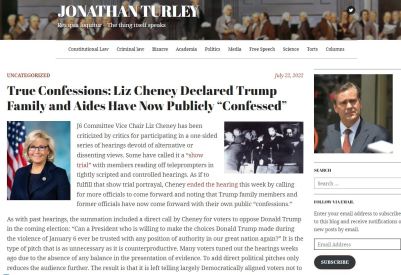 “…once again, the Committee simply edited out conflicting evidence. For example, the Committee again edited out the line of Trump where he said, “I know that everyone here will soon be marching over to the Capitol building to peacefully and patriotically make your voices heard.” [See previous for brief extract of Prof Turley’s biography]