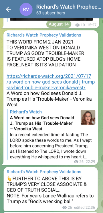 Watch brief video by visiting above channel of Prophecy Validations, also MORE prophecy related news from USA at Richard’s Watch Telegram