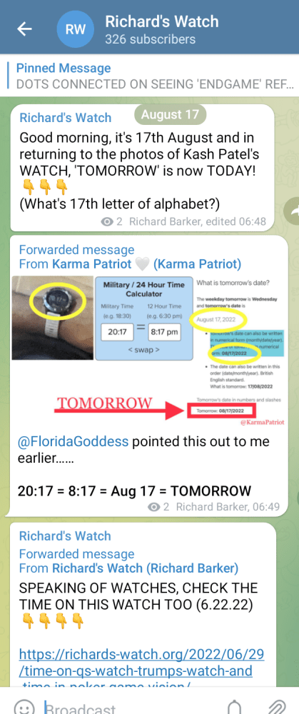 Regarding Veronika West’s vision of Trump-Biden poker game wherein he checks his watch, calls “Time” and shows his cards to win the game and gathers up the mass of money on the table, we note an implicit play on this theme by his close associate Kash Patel (and related posts on my Telegram)