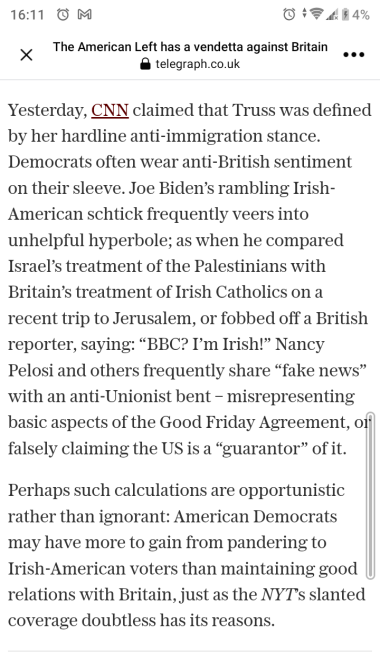 Hello Richard, I see there seems to be growing animosity between the UK and one of its former colonies. Sad to see but understandable. That is what the left does and too often the right falls head first in to the trap. At the risk of continuing the problem however I would like to point out that all the virtue signaling because Liz Truss has not appointed a single white man to higher office is, in fact, a most blatant form of racism. Imagine doing this to a black woman, or German, or Catholic, etc. I do not understand how this behavior can be not only condoned but bragged about. It is pathetic and dangerous. The UK was built and defended at great cost by white men and now your unelected PM is bragging about not allowing a single one any say in how the government is run. I can only shake my head at the ignorance of this. Mark Jenson