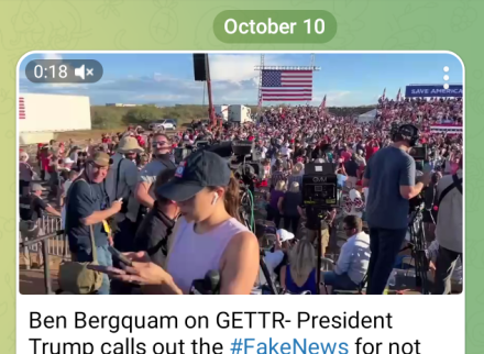 Trump calls the ‘fake news’ cameras to film not only him on the stage but aso all around the media’s gallery….so GETTR’s guy turns full circle to the left…