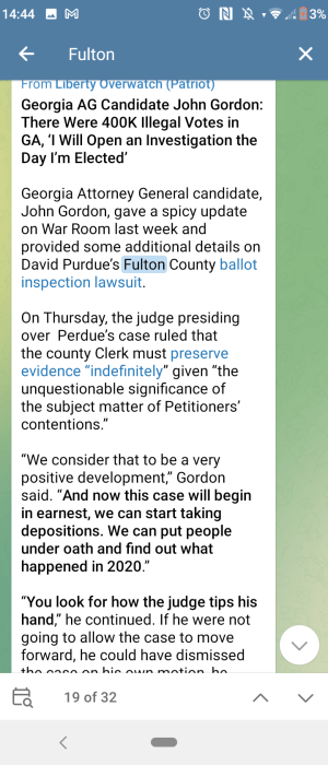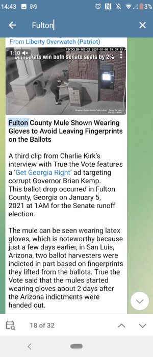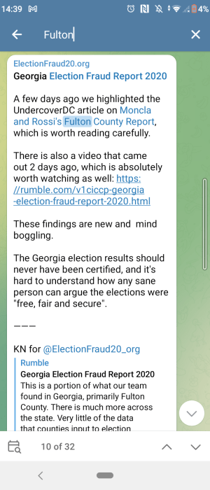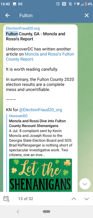 Former military captain Seth Keshel’s claim to fame is that of being the only person who correctly predicted the 2016 election results by mathematical analysis of historical statistics for voting precincts. His analyses of the 2020 election are incontestable, and so I referred to the comprehensive Election Fraud 2020 site’s extensive news updates on Telegram (click here) and found 32 entries on a ginormous problem at Fulton, as in this sample: