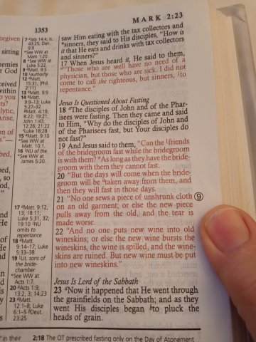 With the dream’s nature as a ‘parable’ in mind, after ‘breaking bread’ and ‘drinking of the cup’ over breakfast I wanted to check Jesus teaching the disciples that they’re to know the deeper Kingdom mysteries and secrets (Matthew 13.11). BUT look where my study Bible opened and where my thumb just so happens to be placed adjacent to…