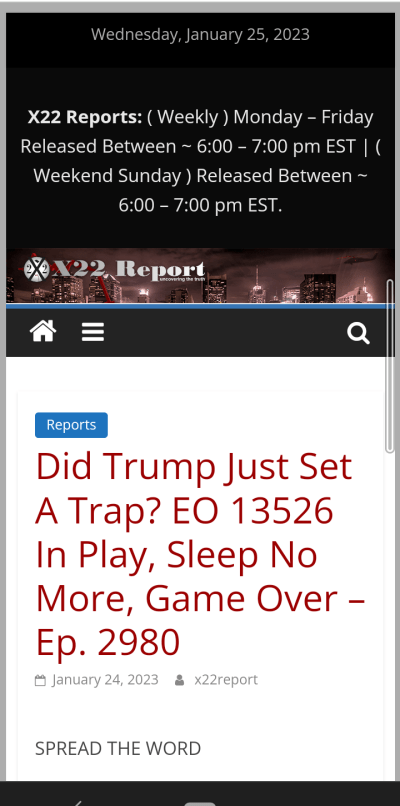 The [DS] players are now being cornered, they will have to make a move and Trump is counting on this. Trump is now moving them down a path and the [DS] players are proceeding down the path. Pence has now been thrown into the mix. More docs have been found at Biden’s place. Trump is now bringing in Obama and pushing Obama to make a move. Will Executive Order 13526 come into play? [DS] in trouble, they have committed the crimes of treason, it’s just a matter of time. Posted on January 24, 2023