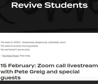 All students and student leaders are invited to join me, Sarah Breuel, JD Walt and students from Asbury at 7pm (GMT) today. Sign up for your zoom link here: https://www.24-7prayer.com/revive-student-conference