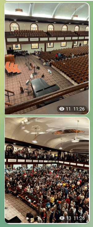 “Here is the most compelling evidence of authenticity for me,” writes JD. “The first picture (below) depicts the chapel immediately after the usual chapel service last Wednesday. Nothing impressive. Just another day. But then students for unknown reasons other than the hand of God began to come back to the chapel. They asked their professors if they could return— uncharacteristic to say the least—- and within a few hours it was… the second picture below.