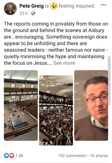 ‘The reports coming in privately from those on the ground and behind the scenes at Asbury are.. encouraging. Something sovereign does appear to be unfolding and there are seasoned leaders – neither famous nor naive – quietly minimising the hype and maintaining the focus on Jesus.