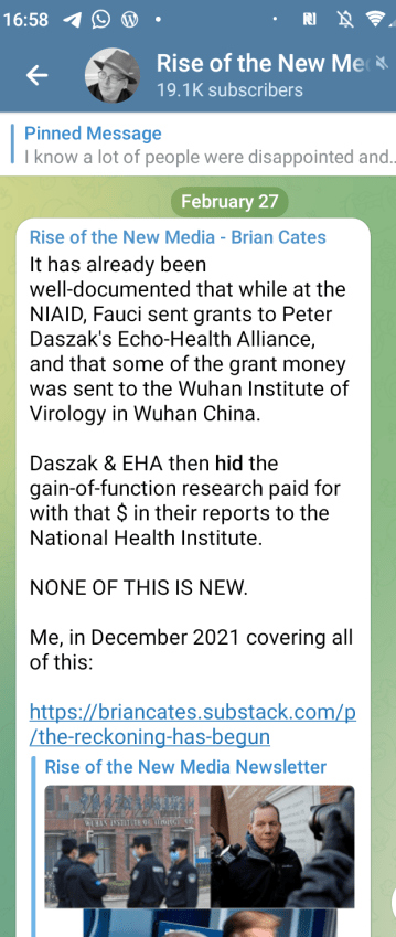 Rise of the New Media – Brian Cates Telegram channel (select ‘Preview’ if not on Tgm)